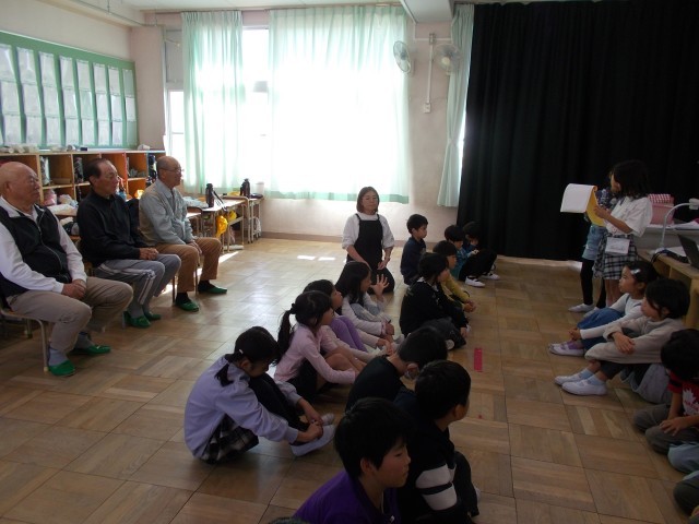 音楽の「虫の声」のグループ発表の様子です。虫の声に合うような楽器を選び、鳴らし方を工夫して発表しました。