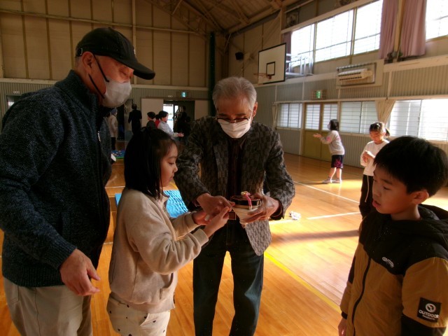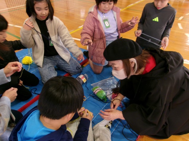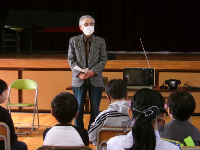 本日 11/21(金)地区社協交流会「ふれあい会」を行いました。地域の方に、暮らしの変化や昔の道具についてお聞きした後、昔の遊び(こま、お手玉、あやとり、ごむつなぎ)を教えていただきました。昔の道具は、洗濯板、テレビ、黒電話、蓄音機の使い方を学び、子供たちは興味津々でした。また、昔は食べるものがなくて、とうもろこしや油かすなどを食べていたりしていたことお聞きして、今は何でもあるから贅沢だな、昔の遊びは電気がなくてもかんたんなものがあればそれが遊びになっていたという感想をもっていました。地域の方からたくさんのことを教えていただき、子供たちにとっていい学びになりました。ありがとうございました。