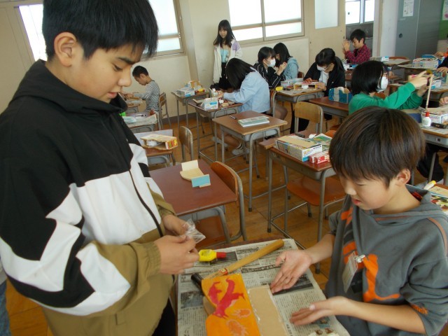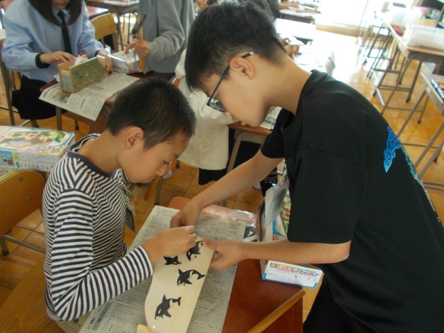 自分の作品が完成すると、友達のところへ行って手伝う姿も見られました。
