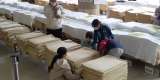 入室して、毛布とシーツを受け取ります。