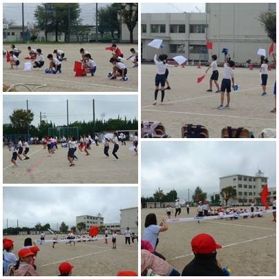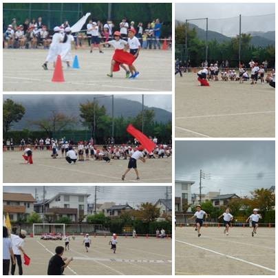 「開会式」「3・4年生でかパンリレー」「1・2年生かけっこ」「5・6年生フラッグダン」「3・4年生徒競走」の様子です。