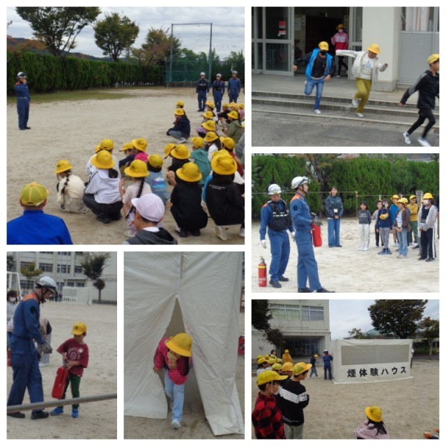 また、消防署東出張所の署員の皆様にお越しいただいて、水消火器での消火訓練と煙道体験をさせていただきました。ありがとうございました。
