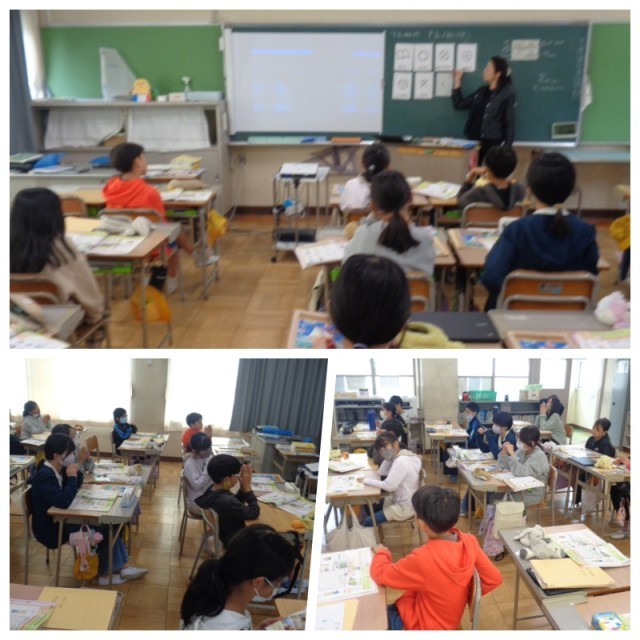 「Let’s go to the zoo. 場所をたずねたり、案内したりしよう」をテーマに街にあるいろいろな施設やお店の言い方をおぼえ、道案内の表現ができるようにしていきます。外国の人を見かけることがとても多くなったので、おぼえておくと役立つことがあるかもしれませんね。