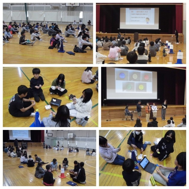 4・5・6年生の児童が参加して学校保健委員会を行いました。「自分と仲間の気持ちを大切にしよう」をテーマに、スクールカウンセラーの先生のお話を聞いたり「気持ちチップ」を使ってお互いの考えを話し合うゲームをしたりしました。