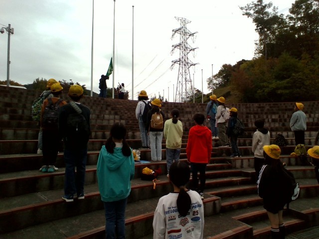 弥勒山から無事に全員元気に自然の家に戻ってきました。入所式です。