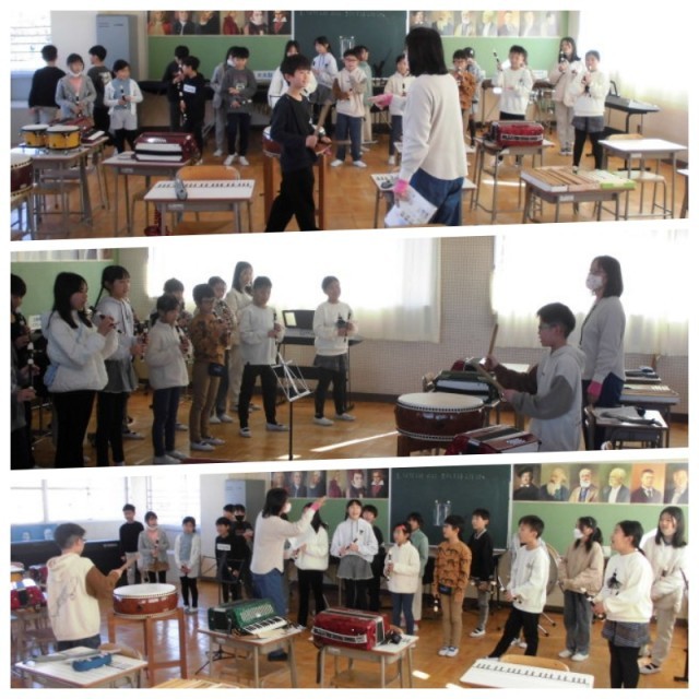 「日本と世界の音楽」をテーマにそれぞれの特徴を学びます。今日はソーラン節。リコーダーや和太鼓で合奏をしました。元気なかけ声が職員室まで聞こえてきました。