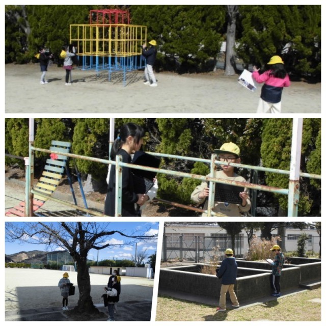 この写真は図工の時間の様子です。題して「写真をとったら見えてきた」です。身の回りにあるものをいつもと違う見方で見て、写真に撮り、造形的なよさやおもしろさなどについて自分の見方や感じ方を広げることをめあてにした学習です。ちょっとレベルの高いめあてになりますが、自由な活動を楽しんでいました。