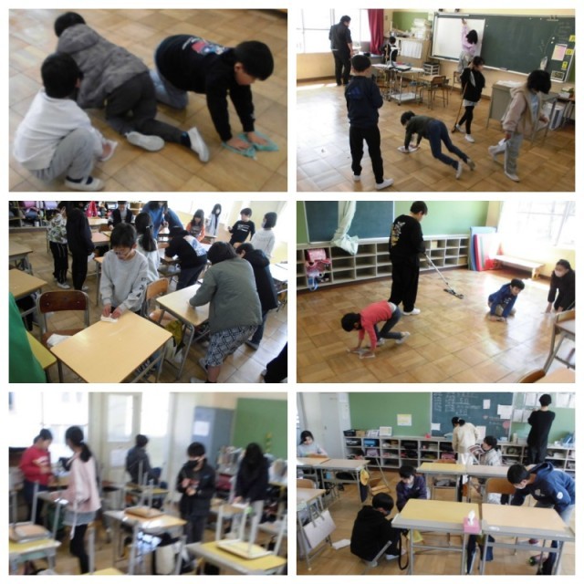 いつもより10分掃除の時間を長くして「大そうじ」をしました。学年が変わる前に普段できないところまできれいにしました。また、絵の具や習字道具などを持ち帰りますので中身の補充をして新しい学年で使えるように準備をお願いします。