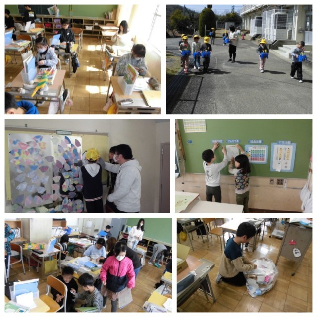 いよいよ明日は修了式。1年間過ごしてきた教室とお別れです。掲示物をはがしたり、教材の整理をしたり、明日の「引っ越し」の準備をしています。お家にお道具箱や絵の具などを持ち帰りますので、整理や補充をして新学期、新学年をしっかり迎えられるようにしてください。