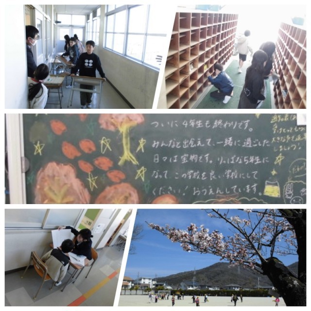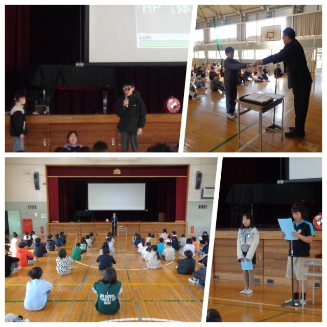 今日は修了式。今年度の最終日となりました。修了式では各学年の代表者に修了証を渡しました。あゆみには今学期の成長やがんばったことが書かれています。お家で振り返り、次の学年でがんばることを話し合ってください。式の後は、教室や下駄箱の掃除をしたり、机やクロームブックを移動移動させたりしました。新しいクロームブックが新学期に渡されます。大切に使ってください。