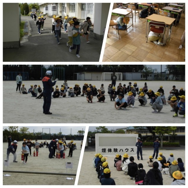 地震の後、火事が起こったことを想定して避難訓練を行いました。今回は放課の時間に地震が起こった場合なので教室や廊下、運動場などにいた時、それぞれどうすればいいか判断する必要がありました。地震はいつ起こるかわかりません。お家にいた時はどうしたらいいか、どこに避難すればいいか、お家でもお話してください。