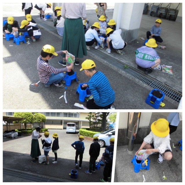 生活科ではアサガオやミニトマトをひとり一鉢で育てましたが、3年生の理科ではホウセンカを育てます。今日は種を植えました。とても小さな種なのでなくさないように慎重に植えました。