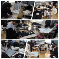 27日に行う「6年生を送る会」で渡す色紙を作っています。なかよし班の一人一人が...