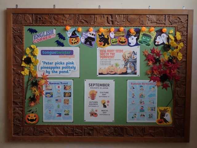 校内の掲示物が秋にチェンジしていました。外国語のコーナーです。ALTさん、ありがとうございました。