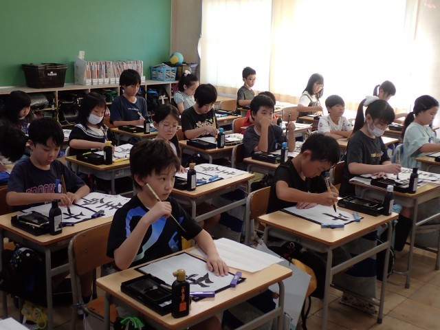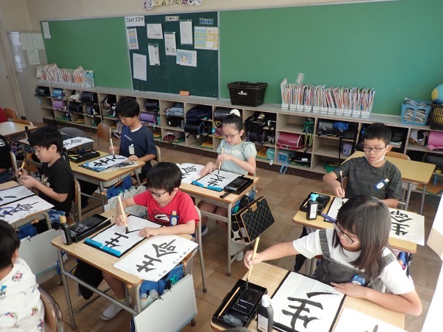筆遣いに気を付けて、中心をそろえて書く 4年生