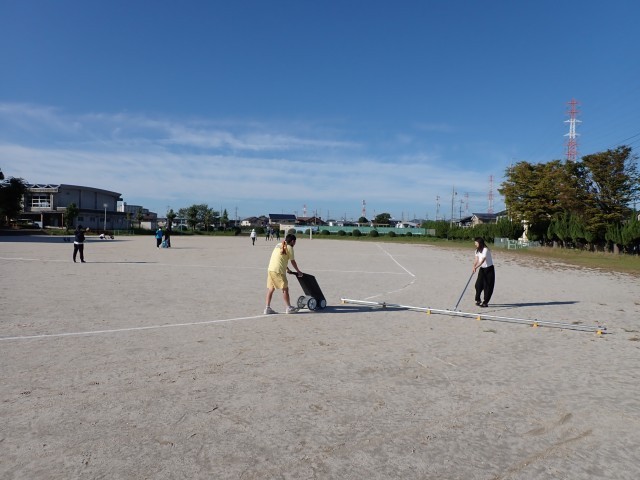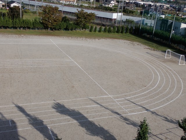 児童下校後に、職員で運動場のライン引きをしました。運動会に向けての練習が始まります。運動会では、各学年、3つの演目を予定しています。代表児童によるリレーも行います。
