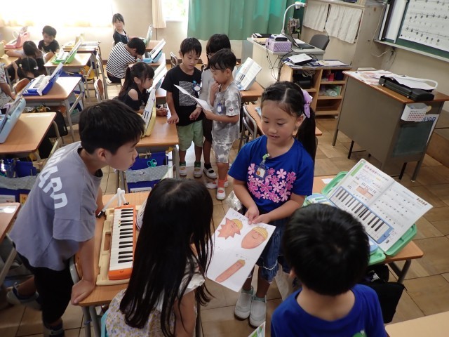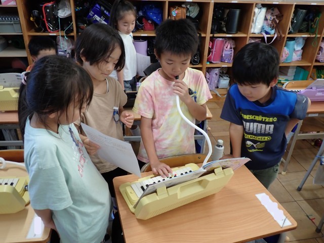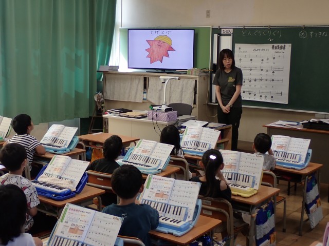 音楽の学習で「どんぐり ぐり ぐり」を鍵盤ハーモニカで演奏しました。