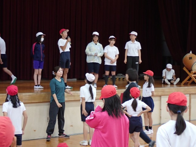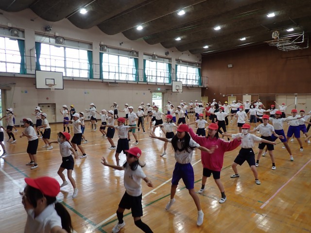 体育の学習です。来週の運動会に向けて、「ソーラン節」の練習をしていました。姿勢、手足の動き、声などの細かいところまで意識して、力強く踊っていました。