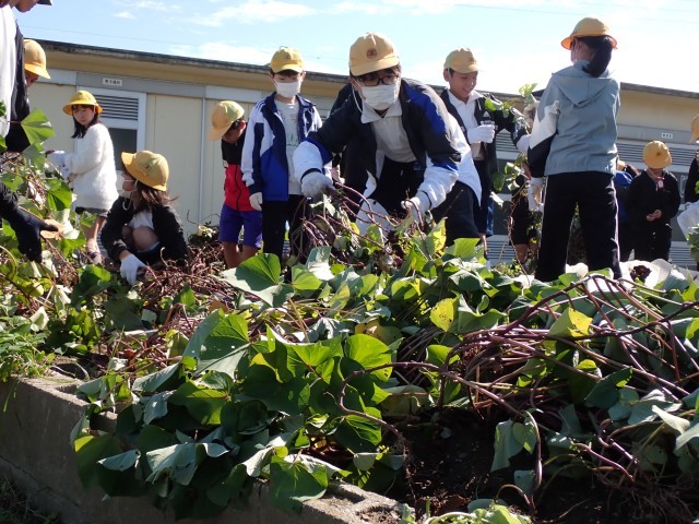 チャレンジ隊の5・6年生が、いもほりの準備をしました。いものつるを根元から切って、つるを取り除く作業です。教頭先生に手順を教えてもらい作業開始です。一人一人の手際がよく、また力を合わせて作業をしたので、どんどん進んでいきました。さすがチャレンジ隊です。