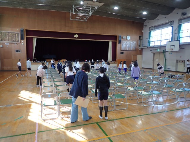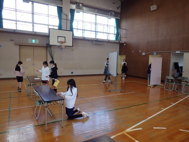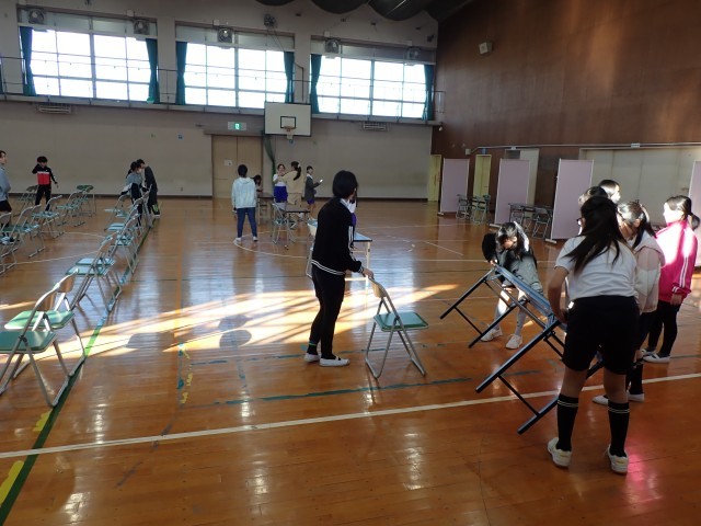 明日10月30日の「就学時健康診断」の会場準備を、6年生が6時日間目に行いました。教務主任や担任の指示をしっかりと聞き、手際よく準備を進めることができました。6年生の皆さん、ありがとうございます。