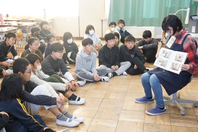 先週から朝の読書週間が始まっています。朝、心を穏やかに読書に親しむことで、学習に集中できる環境を整えます。この期間に、図書ボランティアの方による読み聞かせも行っています。