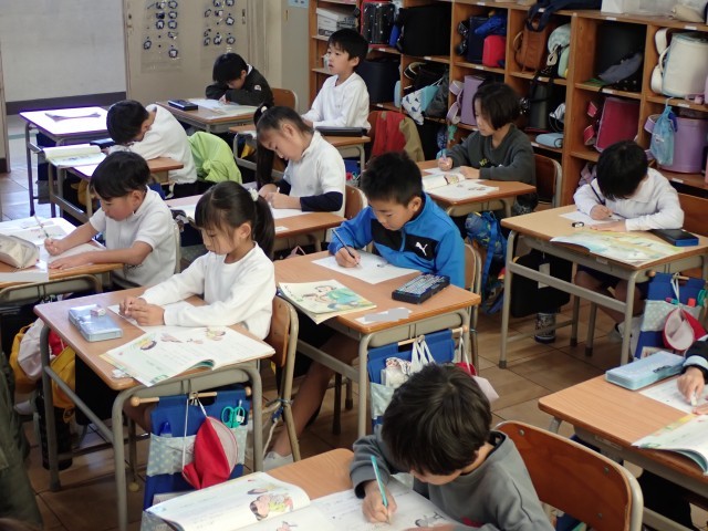 道徳の学習です。「いきて いるって」という詩を読んで、生きているからできることにはどんなことがあるのか、生きているとどんな良いことがあるのかを考えて、発表したりワークシートに記入したりしました。