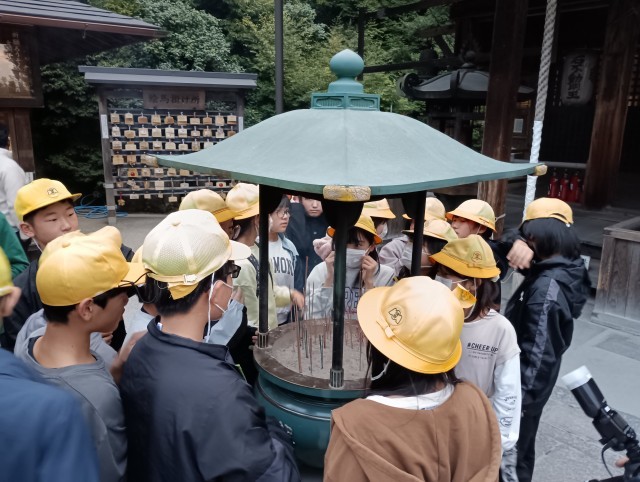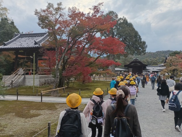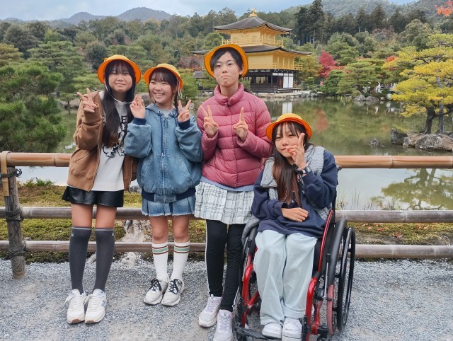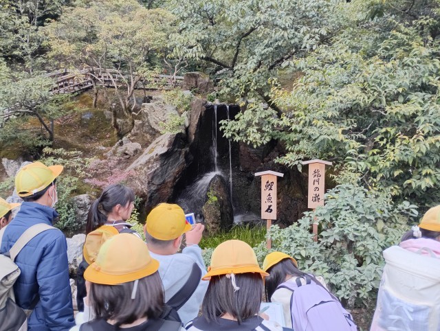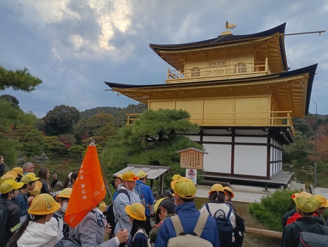 1日目最後の見学地は金閣でした。ガイドさんの話を聞きながら散策をしました。金閣の美しさに多くの子が声をあげていました。池に映った金閣も紅葉もきれいでした。