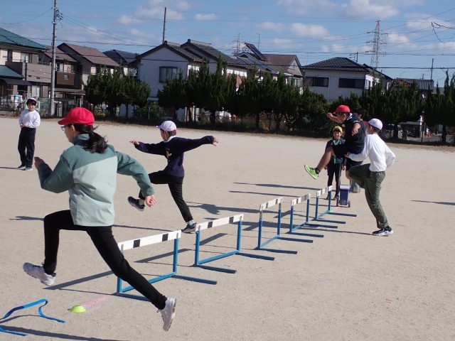 スタートから全力で走ること、遠くから踏み切って足が一番にハードルを越えること、「1・2・3・4」で大きく早く足を動かして同じ足でハードルを越えること、などを目標に練習を頑張りました。