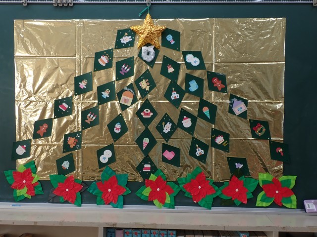 図書ボランティアさんが、図書室前廊下と図書室前面を、季節を感じる掲示物で飾り付けてくれました。ありがとうございました。