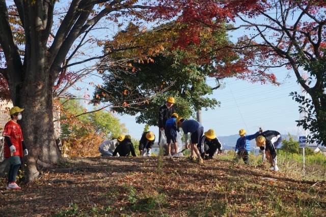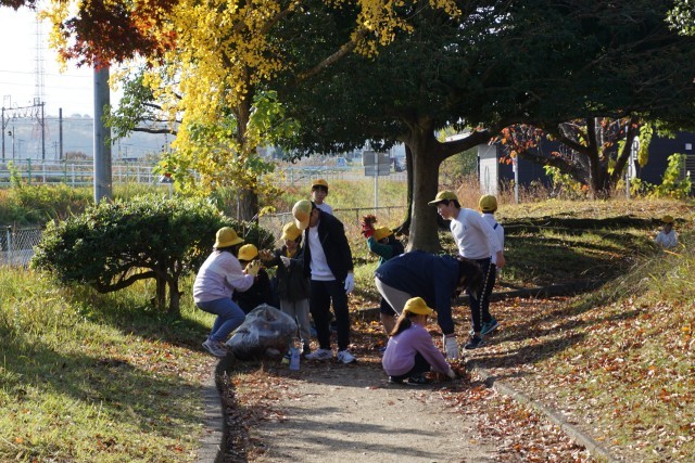 この活動は、青少年赤十字活動の実践目標『健康・安全、奉仕、国際理解・親善』と態度目標『気づき、考え、実行する』をもとに考え、今年度新たに取り組み始めました。当日は、なかよし班(縦割り班)ごとに、運動場や藤ノ木公園の分担箇所へ移動し、落ち葉集め、ごみ拾いや掃除などを行いました。