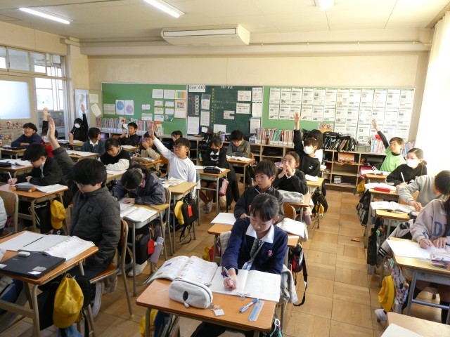 この時間は、人口密度について学習しました。その意味を確かめ、教科書に示されている「兵庫県と京都府の人口と面積」の資料から立式・計算をして、人口密度を比べました。
