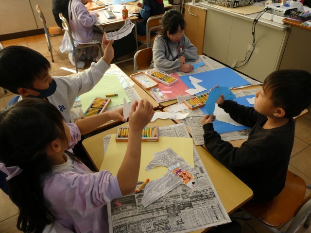 図工「やぶいた かたちから うまれたよ」の学習です。