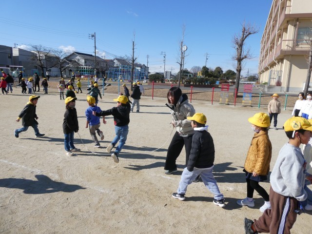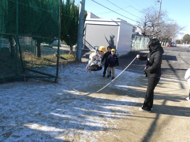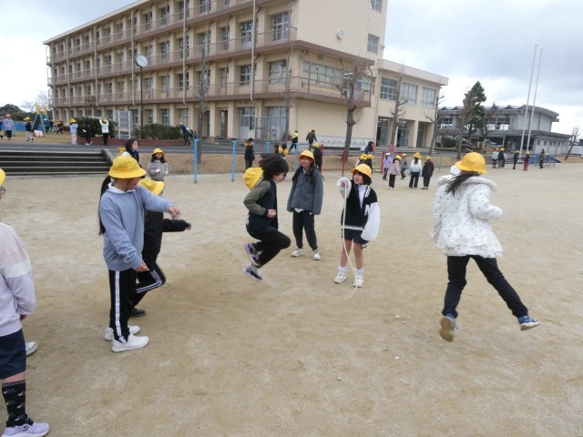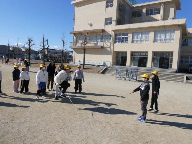 3学期の長い休み時間は、大縄跳びの練習をしている学級が多いです。先生も加わっている学級もあります。