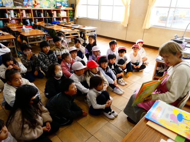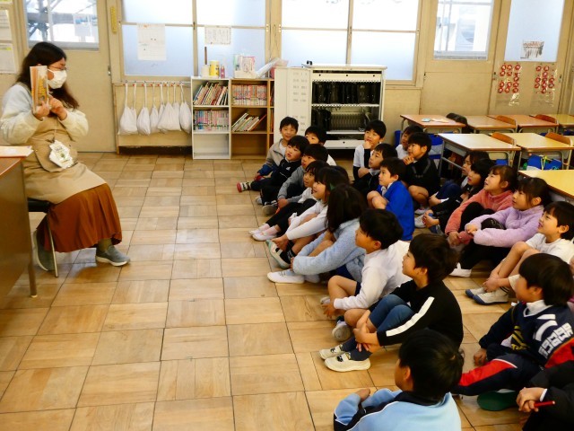 1年生への読み聞かせの様子です。読み聞かせが大好きな1年生、素敵なお話に聞き入ったり、楽しいお話に声をあげたりしていました。