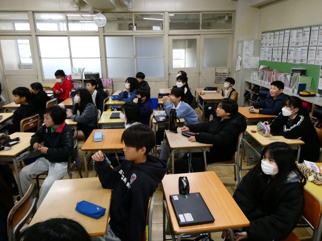 保健指導の時間の様子です。この時間の課題は「SNSの被害から自分の心と体を守る方法について考えよう」でした。