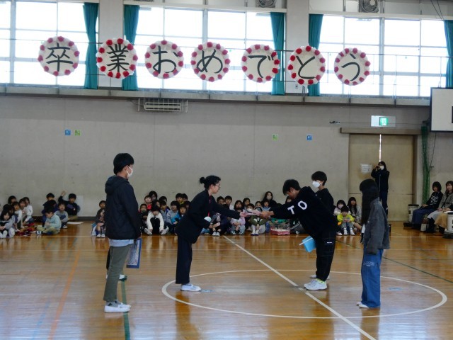 第1部に引き続き、体育館で「6年生送る会」の第2部を行いました。