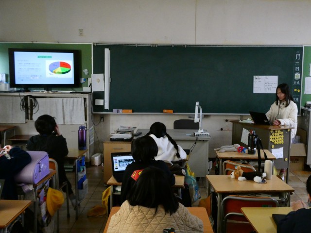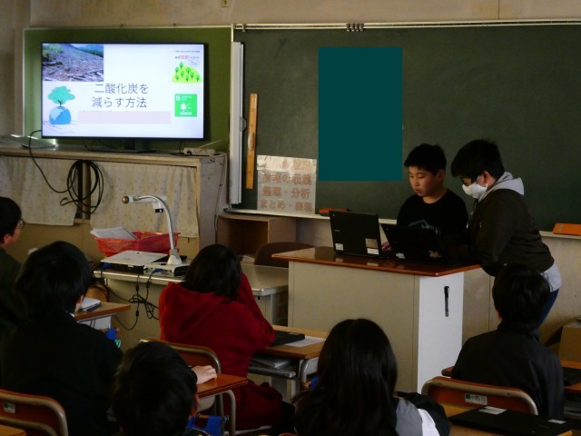 写真は、2回目の発表会の様子です。1回目は自分の学級の友だちに発表しました。その発表後に修正を加え、この時間は、隣の学級の友だちに発表しました。3年目ともなると内容がかなり深まっており、聞きごたえのある発表でした。