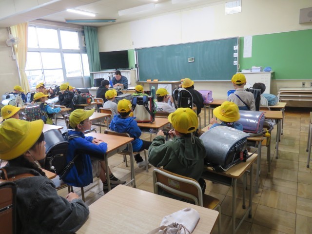 通学班の集合場所、集合時刻、並び方を確認しました。安全、安心に登下校できるように指導をしました。雨が降る中、班でまとまって下校しました。月曜日からも、班長さんを中心にして登下校しましょう。