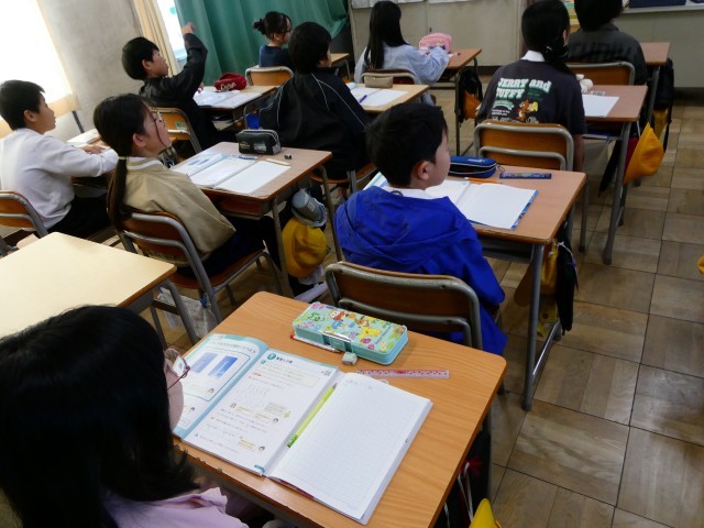 算数の学習の第1時です。この時間は、机上の整頓、ノートの使い方(下敷き、共通部分の確認など)、発言時の約束などを共有しました。見やすさを意識してノートを書き、学びを整理したり振り返ったり友だちに伝えたりすることが、これまで以上にできるようになるとよいですね。