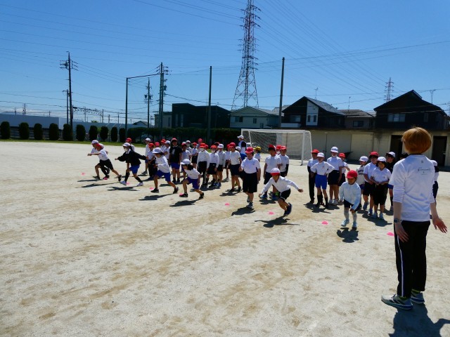 今回の内容は「短距離走」で、5月の体力テストに向けて、速く走るコツや練習方法を学びました。足の上げ方・下ろし方・地面のけり方、スタート時の体重のかけ方などを意識して練習しました。来週は2回目で「ハードル走」を予定しています。