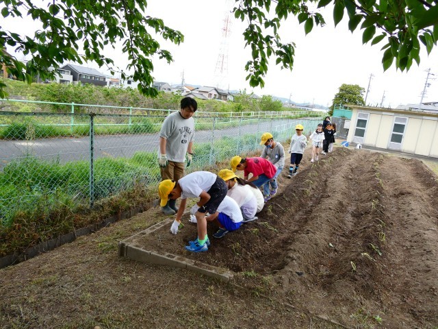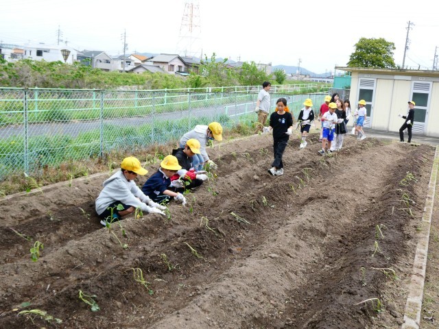 今年度の「しのはらチャレンジ隊」の活動が始まりました。初めの活動は「サツマイモの苗植え」です。休み時間を使い、PTA役員さんや地域ボランティアさんと一緒に、1日目は2・4・6年生が、2日目は3・5年生が作業をしました。今後は、水やりや草取りが主な活動です。隊員の皆さん、高学年を中心に、協力して頑張りましょう。