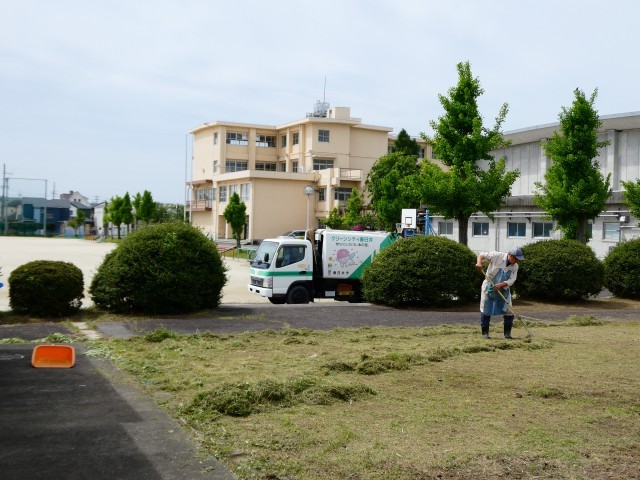 今週の月曜日と火曜日の2日間、春日井市教育総務課の方々に、今年度1回目の校地内の草刈りをしていただきました。子どもの家、体育館、しのはら畑、プール周辺がきれいになりました。ありがとうございます。