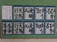配膳室前廊下に、書の作品が掲示してあります。春日井市で毎年行われる「県下児童・生...