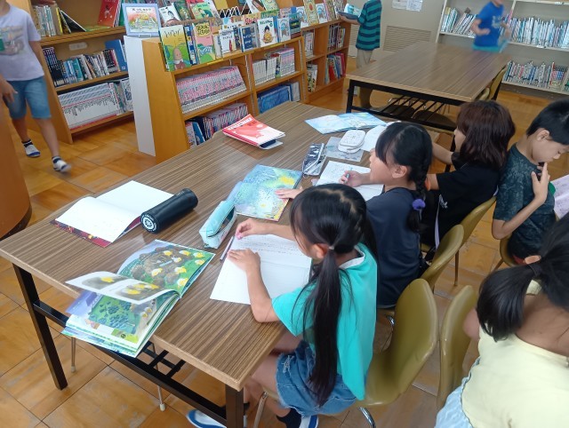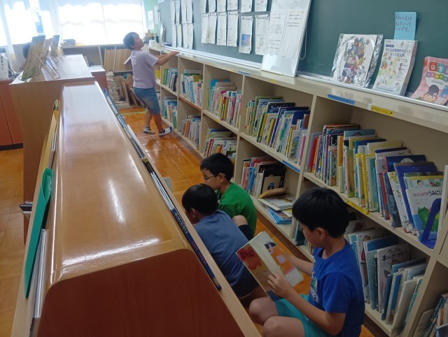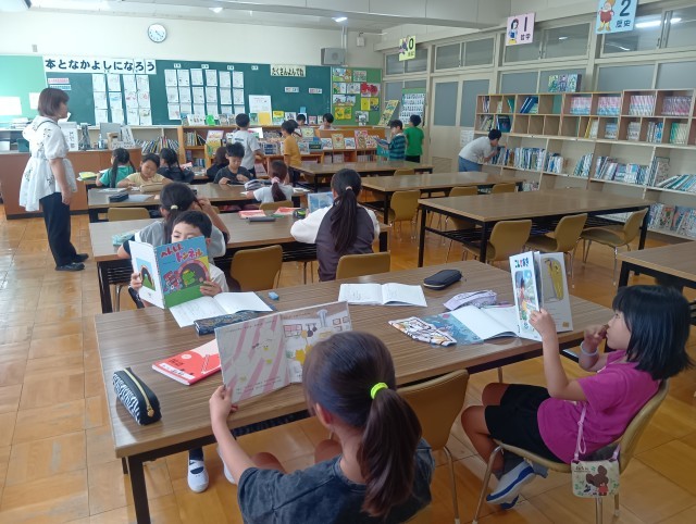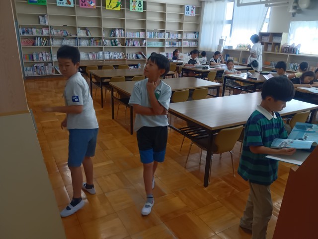 1年生におすすめの本を紹介するために、図書室で本を選びました。1年生に楽しんでほしいと、紹介する本を随分迷っている児童もいました。