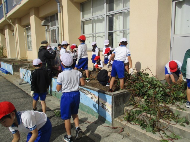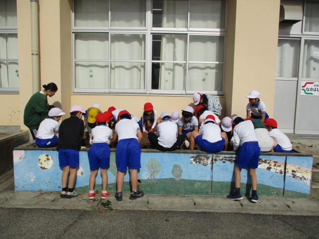 春にサツマイモの苗を植え、夏に葉が青々と茂り、秋に楽しみにしていたいもほりをしました。つるをたどると、実ったさつまいもが見つかりました。楽しい収穫体験となりました。
