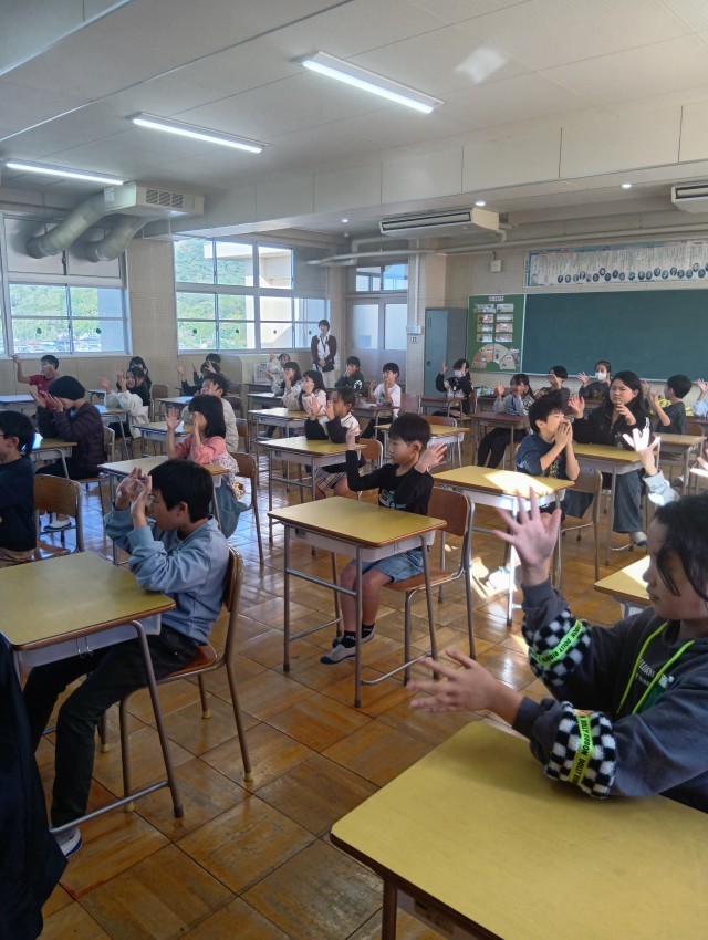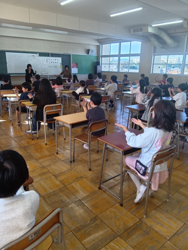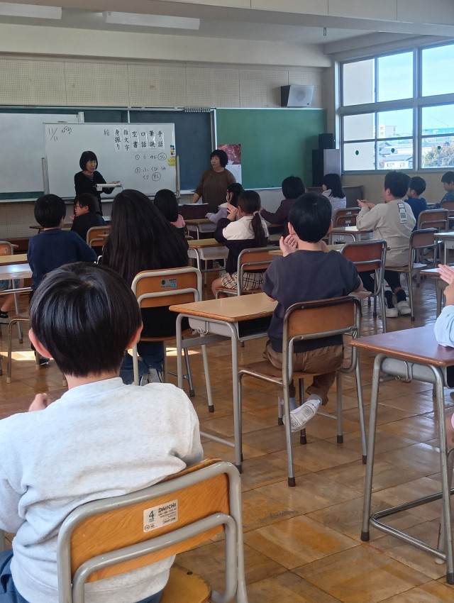 3年生は、総合の福祉体験として聴覚障害を持つ先生をお招きし、交流の機会を設けました。先生には、手話、口話(読唇)、ジェスチャーなど、多様なコミュニケーション方法を実演を交えてご指導いただきました。また、耳が聞こえないことで日常生活でどのような課題や困難に直面するのか、具体的にお話をしていただきました。