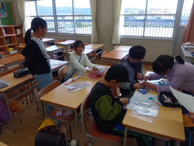 手芸クラブでは、5月から作ってきた「箸入れ」が完成して展示をするところでした。