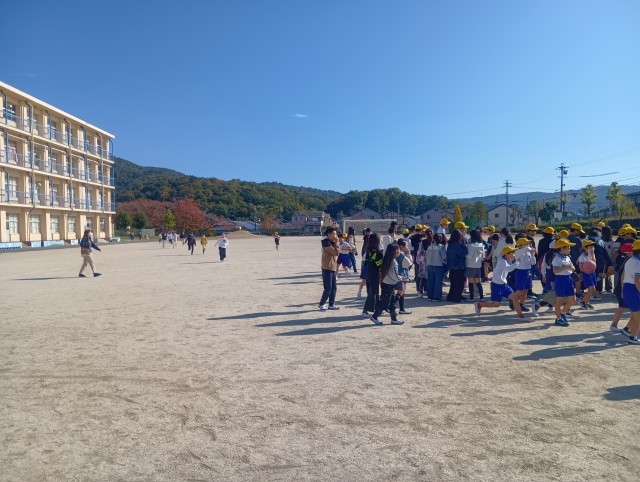 放課に地震と火事が発生したことを想定して、避難訓練を行いました。東出張所から消防署員さんにも来ていただき、煙道訓練、消火器体験をしました。高学年が体験した消火器の扱いでは「思ったより重たい」「うまく的に当てられない」といった感想が聞かれました。