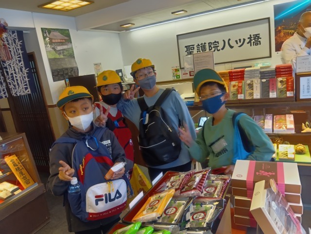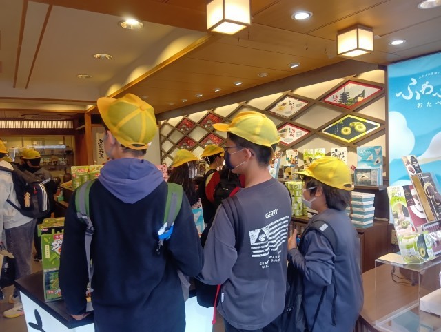 お土産を買う買い物タイムです。観光客が多く、グループがはぐれてしまったところもありました。でもみんなお目当てのお土産を買うことができたようです。