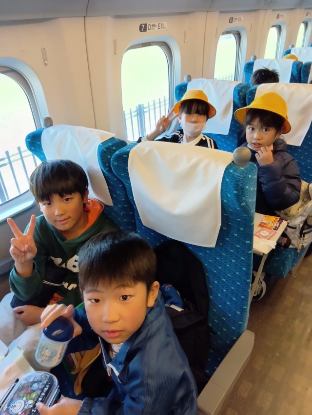 お昼ご飯は、外に置いてある本物の新幹線の中で食べました。特別な場所でのご飯はとても楽しく、思い出になりました。